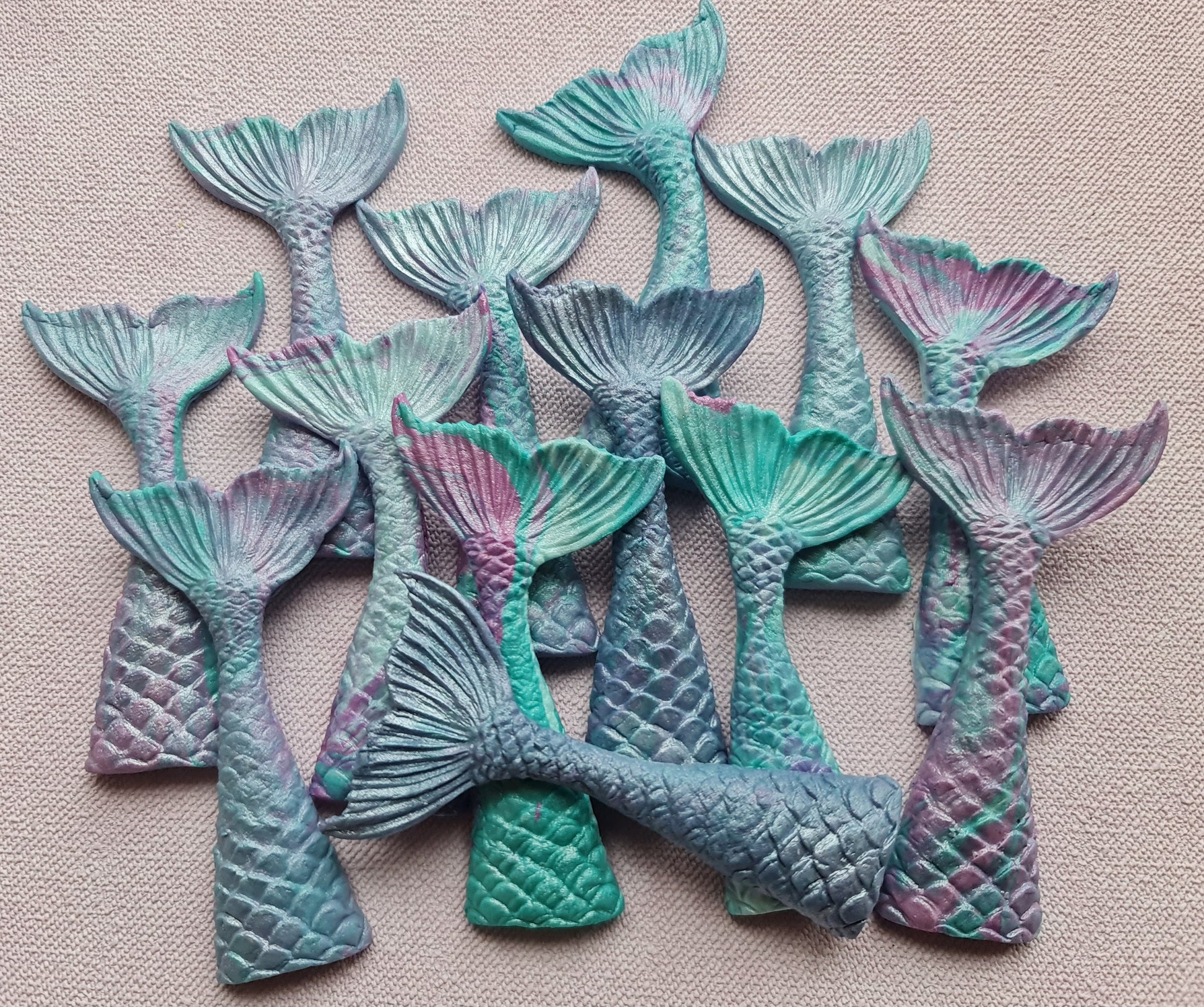 12 pcs. Fondant sugar mermaid tails, mermaid fin cake cupcake topperNo Extra Fees for US Buyers
