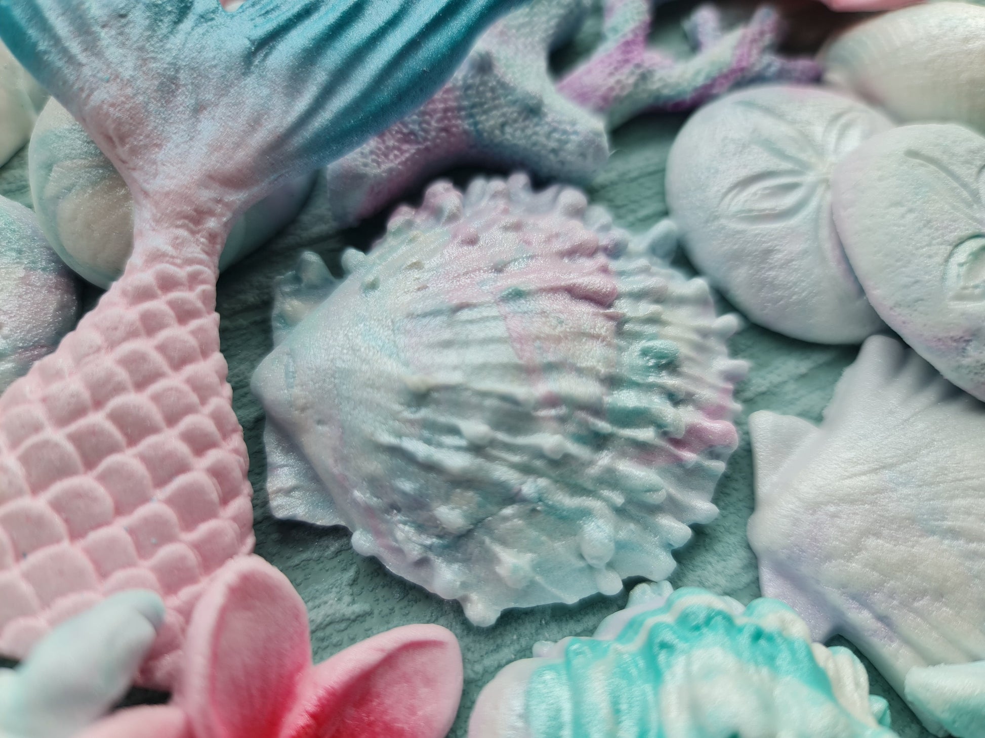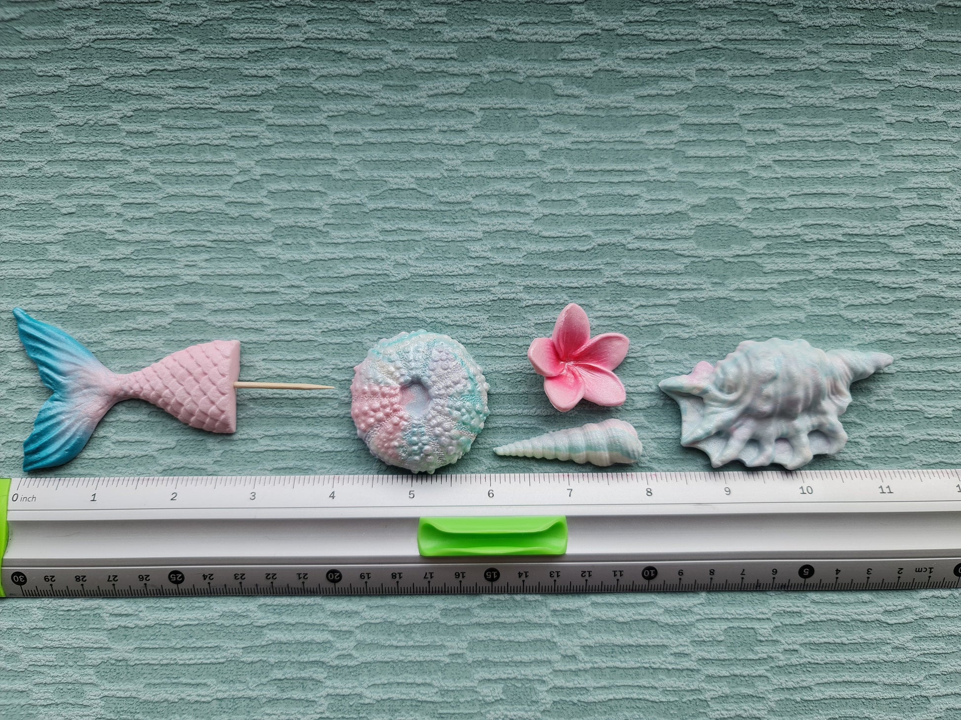 45pcs Sugar Shells Cake Topper: Mermaid Tail, Coral, Plumeria Decorations